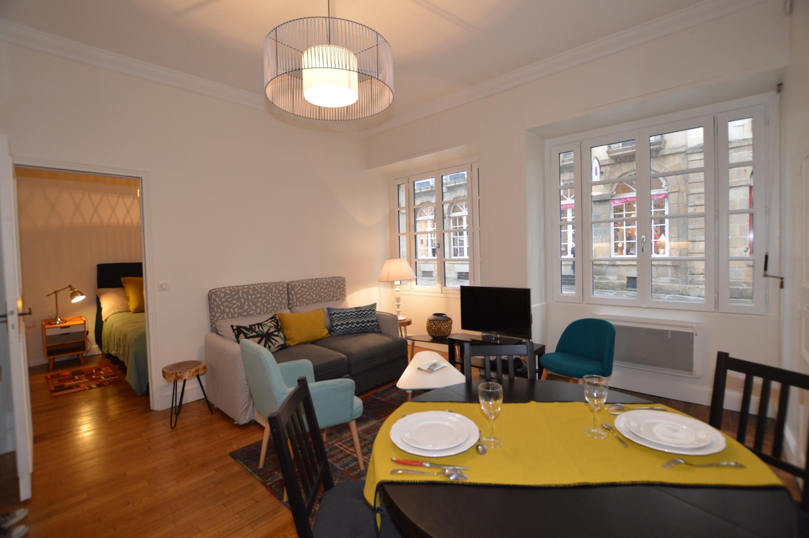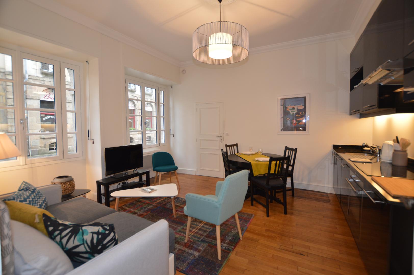 Au 1 rue du chapitre, rue dont le charme architectural est représentatif du centre ville de Rennes, cet appartement a été entièrement refait à neuf en 2017.